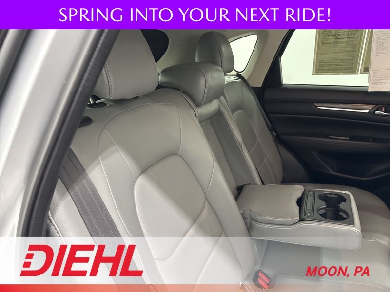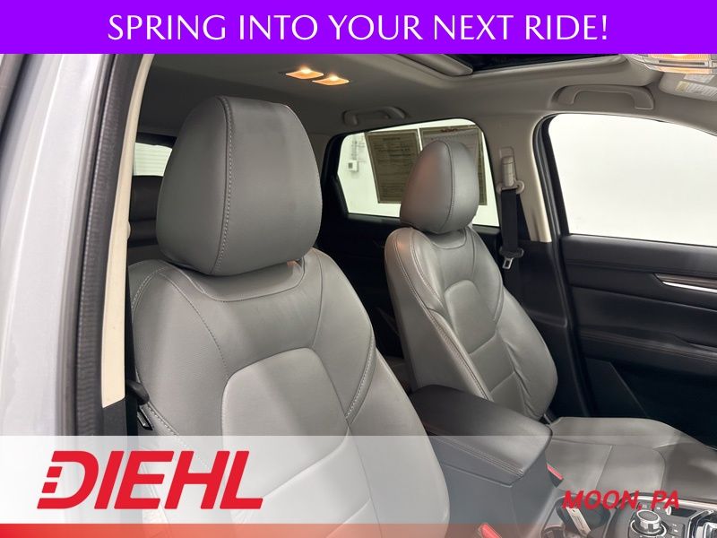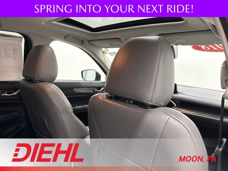 The Grand Touring trim is where this CX 5 really shines. Leather trimmed seating, heated front seats with driver memory, and a power passenger seat create a cabin that feels upscale without trying too hard. The Premium Package adds a head up display, heated rear seats, and a heated steering wheel so even the back seat passengers get VIP treatment. A power sunroof brings in fresh air and sunlight, while the power liftgate makes loading groceries, gear, or weekend adventure supplies refreshingly easy.
