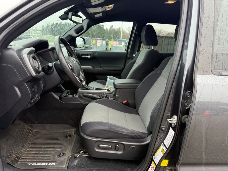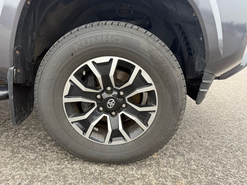The exterior of this Tacoma exudes a commanding presence, with its bold Gray color, body-colored bumpers, and 17-inch machined alloy wheels. Step inside, and you'll be greeted by a well-appointed cabin featuring premium fabric seating, a leather-wrapped steering wheel, and an intuitive infotainment system.