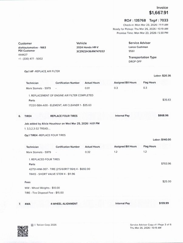 - P215/60HR17 AS BSW front and rear tires