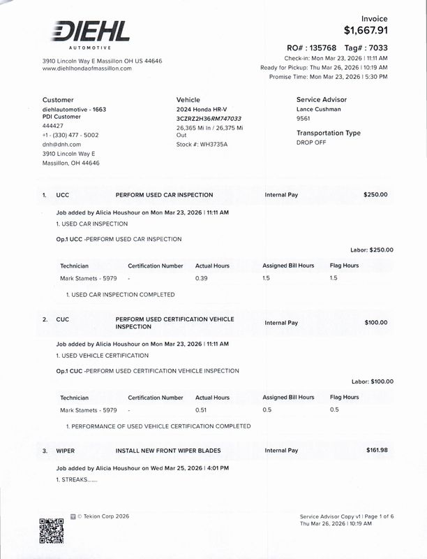 Diehl Automotive utilizes a system that generates market value pricing automatically for new and pre-owned vehicles and may cause errors, inaccuracies, or omissions. Some aftermarket additions or accessories may not be displayed properly. For accuracy, please contact the dealer for real-time, accurate pricing. A documentation fee of $398 applies and is not included in the pricing. Tax, title, and tags are also not included and must be paid by the purchaser. Some prices may include manufacturer-to-dealer offers that are not compatible with manufacturer special finance programs and/or lease offers. While great effort is made to ensure the accuracy of the information on this site, errors do occur, so please verify information with a customer service representative. This is easily done by calling us at (330) 639-2479 or by visiting us at the dealership.
