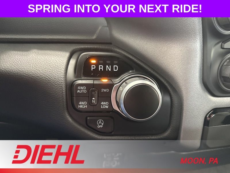 Inside, the Big Horn Level 1 Equipment Group adds the kind of comfort and tech that turns this truck into more than just a workhorse. Heated front seats and a heated steering wheel take the edge off cold mornings, while Apple CarPlay, Android Auto, and a WiFi hotspot keep you connected wherever the day takes you. Remote start means the cabin is ready before you are, and the intuitive touchscreen and driver information center make everything easy to access without feeling like you need a tech degree.